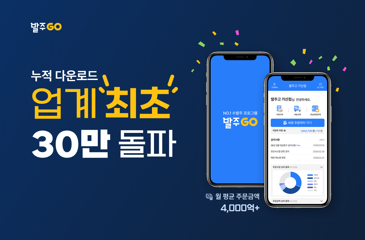 B2B 식자재 수발주 앱 ‘발주GO’가 누적 다운로드 30만 건을 돌파하는 의미 있는 성과를 달성했습니다.